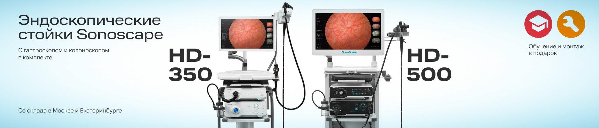 Специальное предложение на эндоскопические стойки SONOSCAPE 350 HD и 500 HD в готовом комплекте с гастроскопом и колоноскопом.Решение подходит для оснащения эндоскопического кабинета без подбора оборудования по отдельности.